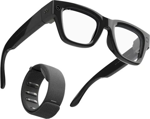 Gafas inteligentes AI 2025 en lente, pantalla HUD, gafas AR de realidad aumentada, tecnología portátil, marco negro brillante